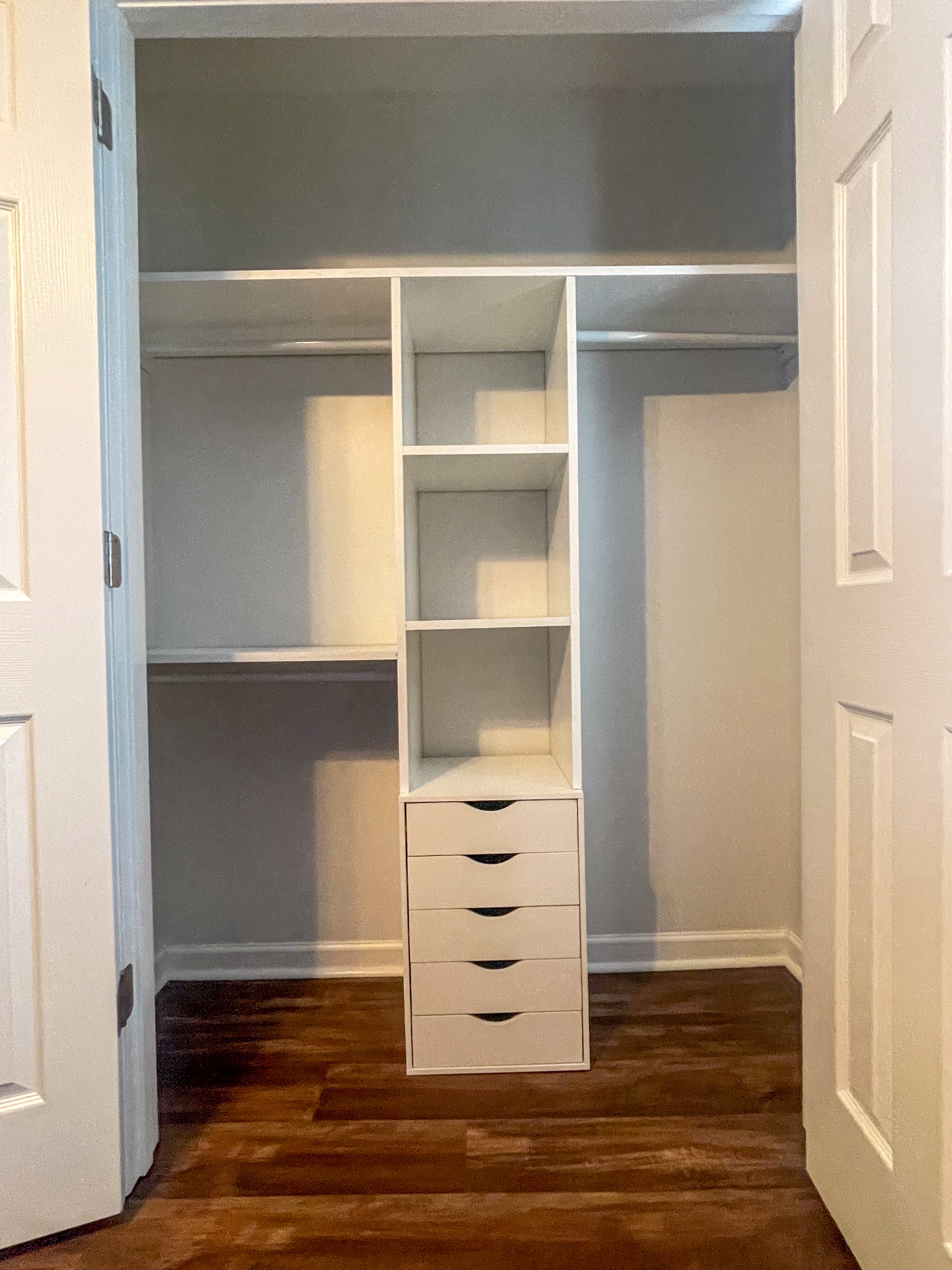 Functional closet storage built and installed to maximize your layout. -