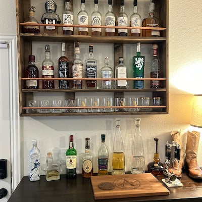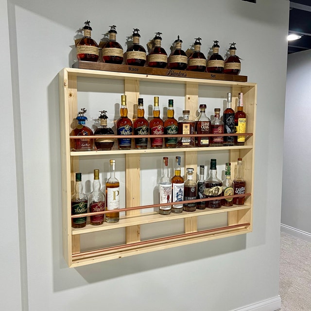 Introducing our premium Liquor Shelf, designed to elevate your bourbon display to new heights. Hand crafted with precision, this shelf is the perfect addition to showcase your impressive liquor collection. Create a captivating showcase for your finest spirits with our versatile and functional design. The shelf provides ample space to organize and display your bottles, allowing you to proudly exhibit your collection. It seamlessly blends with any home décor, adding a touch of refinement to your bar area or living space.